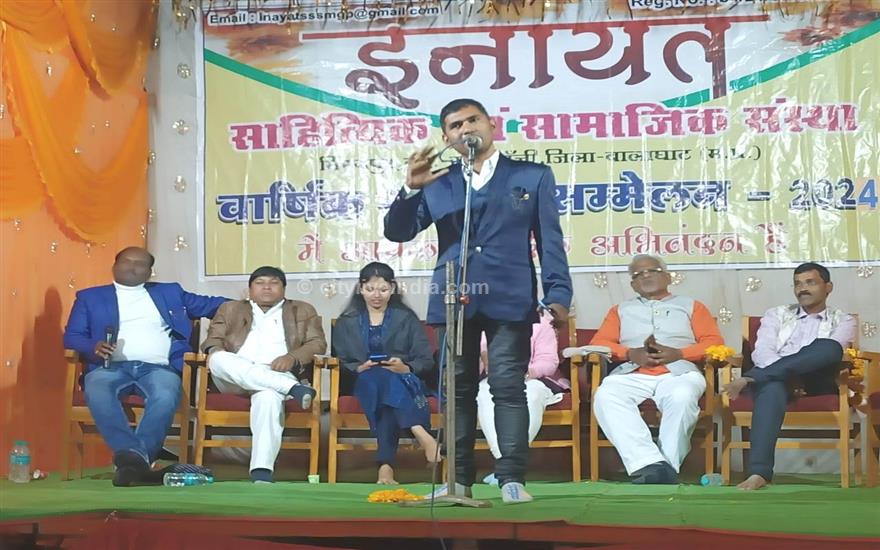 बालाघाट. जिले की साहित्यिक सामाजिक संस्था इनायत के चतुर्थ स्नेहल सम्मेलन का आयोजन गत दिवस किया गया. जिसमें विभिन्न क्षेत्र के उत्कर्ष कार्यो को सम्मान एवं कविल सम्मेलन का आयोजन किया गया. जिसका क्षेत्र के लोगों ने जमकर आनंद उठाया.  21 जनवरी शाम 7 बजे से स्कूल ग्राउंड मिरगपुर में आयोजित इस कार्यक्रम में बतौर प्रमुख अतिथि नामदेव कुर्वे, केसर बिसेन सभापति जिपं., प्रकाश उके जिपं. सदस्य, कन्हैयालाल देशमुख उपस्थित थे. इस दौरान तिजुलाल मेश्राम कृषक सम्मान में विगेश राहंगडाले मिरगपुर, सत्यवान दशहरे जैतपुरखापा, शकील खान मोहगांवघाट, धनेंद्र मेश्राम टेकाडीघाट को नगद राशि और सम्मान पत्र से सम्मानित किया गया. इसी प्रकार केवलराम कोलते श्रमवीर सम्मान भुवनलाल सहारे मिरगपुर एवं रेवाराम उपवंशी सावरगांव को प्रदान किया गया. इसके अलावा बारी-बारी से साहित्य सृजन सम्मान बंशीधर मिश्रा अकलतरा छत्तीसगढ़, मनोहर बुद्ध शुजालपुर, मुकेश मनमौजी सिवनी छपारा, अंजूलता साहू सारंगढ़ छत्तीसगढ़ को साहित्य के क्षेत्र में रवि देशमुख समाजसेवी सम्मान शिक्षक पवन पटले दुधारा एवं रामदास ठवकर भौरगढ़, मेधावी छात्र सम्मान में  निर्दोष बिसेन 12वीं मिरगपुर, सलोनी नगपुरे 12वीं मिरगपुर, मनस्वी भैरम 10वी, मिरगपुर, स्नेहा पटले 10वी मिरगपुर और पत्रकारिता सम्मान में  पत्रकार संदीप वाघमारे एवं यमलेश वंजारी को सम्मान पत्र एवं शिल्ड देकर सम्मानित किया गया.