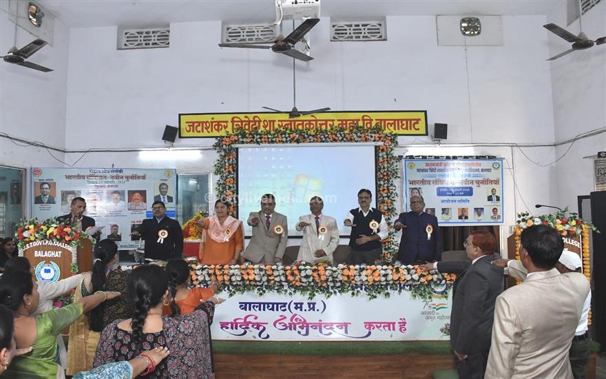 बालाघाट. 23 जनवरी को जिले के अग्रणी प्रधानमंत्री कॉलेज ऑफ एक्सीलेंस जटाशंकर त्रिवेदी स्नातकोत्तर महाविद्यालय में सायंकाल 05 बजे तक दो सत्रो में भारतीय संविधान के 75 वर्ष पूर्ण होने राष्ट्रीय सेमीनार का आयोजन किया गया.  भारतीय संविधान नवीन चुनौतियां विषय पर आयोजित सेमीनार में प्राचार्य डॉ. पी. आर. चंदेलकर ने संविधान निर्माण प्रकिया पर अपनी बात रखी. जनभागीदारी समिति अध्यक्ष मौसम हरिनखेरे ने बताया कि भारत के सबसे बड़े ग्रंथ संविधान के माध्यम से उज्ज्वल एवं स्वर्णीम भारत की परिकल्पना साकार हो रही है. संविधान सभी वर्ग के नागरिकों को सुरक्षा प्रदान करना है. जिला विधिक सेवा प्राधिकरण सचिव न्यायाधीश सुरेन्द्र सिंह गुर्जर ने बताया कि भारत का संविधान विश्व के सभी संविधान का गहन अध्ययन है. जिस कारण संविधान को चुनौती देना संभव नहीं है. अनुच्छेद 14 विधि के समानता का अधिकार प्रदान करता है एवं अनुच्छेद 39ए गरीब जनता के उत्थान में सहायक है. समता का अधिकार एवं आरक्षण के माध्यम से समाज में समानता आ रही हैं.