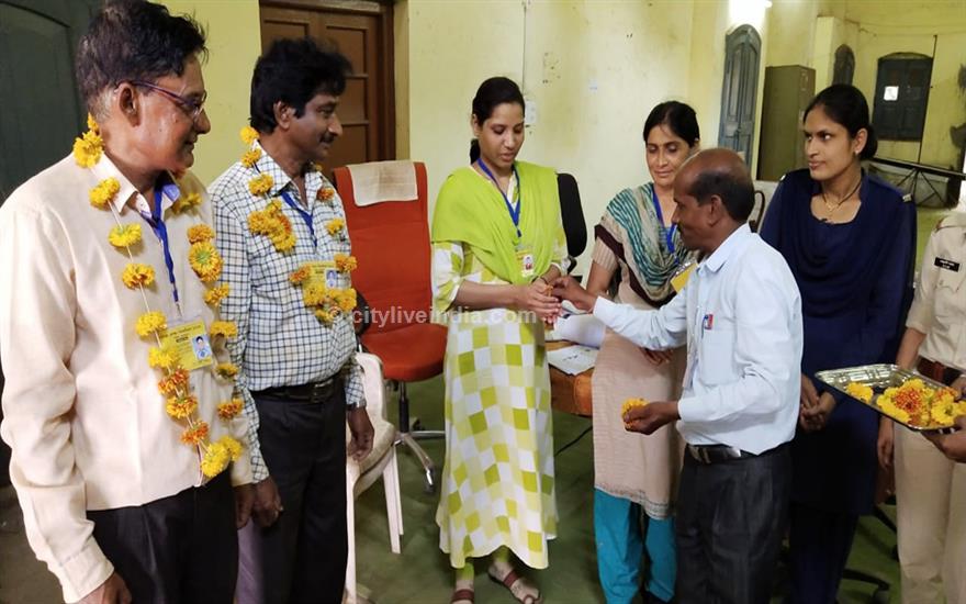 मतदान दलों का मतदान केन्द्रों पर पुष्प और टीके से किया गया स्वागत